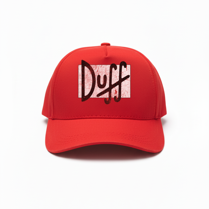 Clássico direto de Springfield: boné vermelho com o logo vintage da cerveja Duff, para quem é fã dos Simpsons e curte aquele visual divertido com toque nostálgico de bar do Moe.